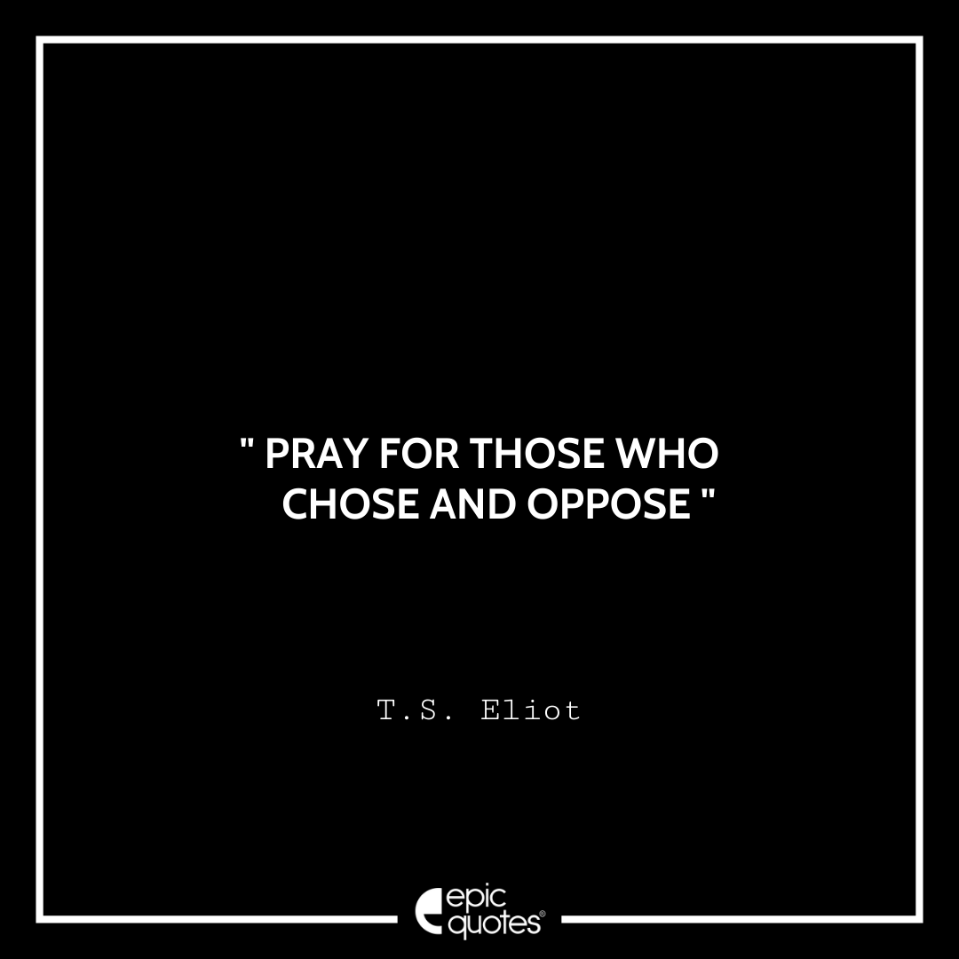 1. Pray for those who chose and oppose. -T.S. Eliot