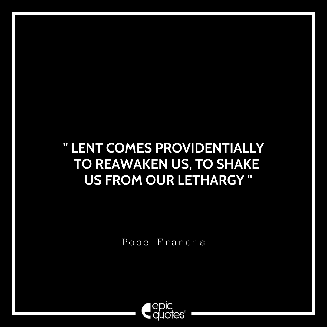 8 Lent comes providentially to reawaken us, to shake us from our lethargy. -Pope Francis
