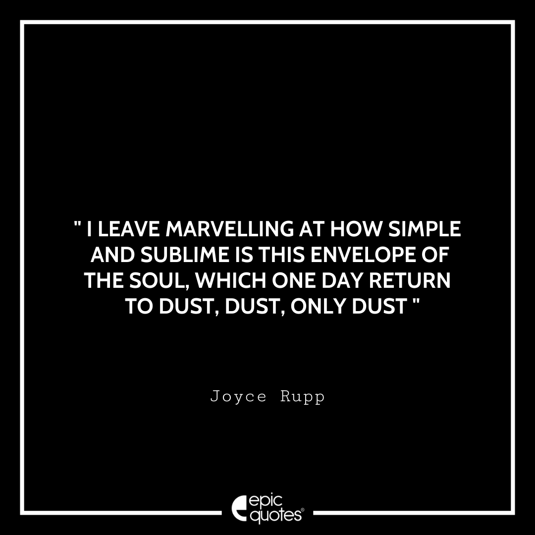 13. I leave marvelling at how simple and sublime is this envelope of the soul, which one day return to dust, dust, only dust. -Joyce Rupp