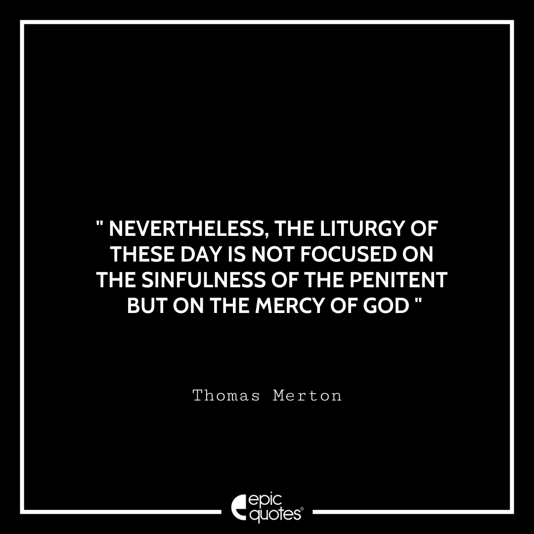 14. Nevertheless, the liturgy of these day is not focused on the sinfulness of the penitent but on the mercy of God. -Thomas Merton