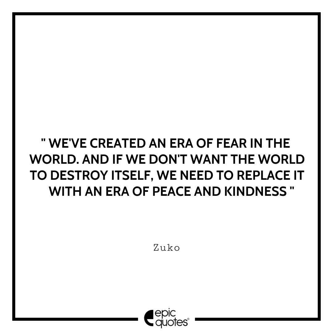 1. We’ve created an era of fear in the world. And if we don’t want the world to destroy itself, we need to replace it with an era of peace and kindness. -Zuko