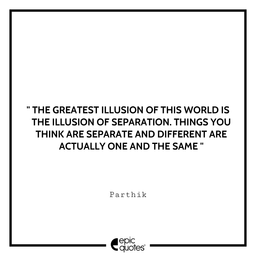 8 . The greatest illusion of this world is the illusion of separation. Things you think are separate and different are actually one and the same. -Parthik