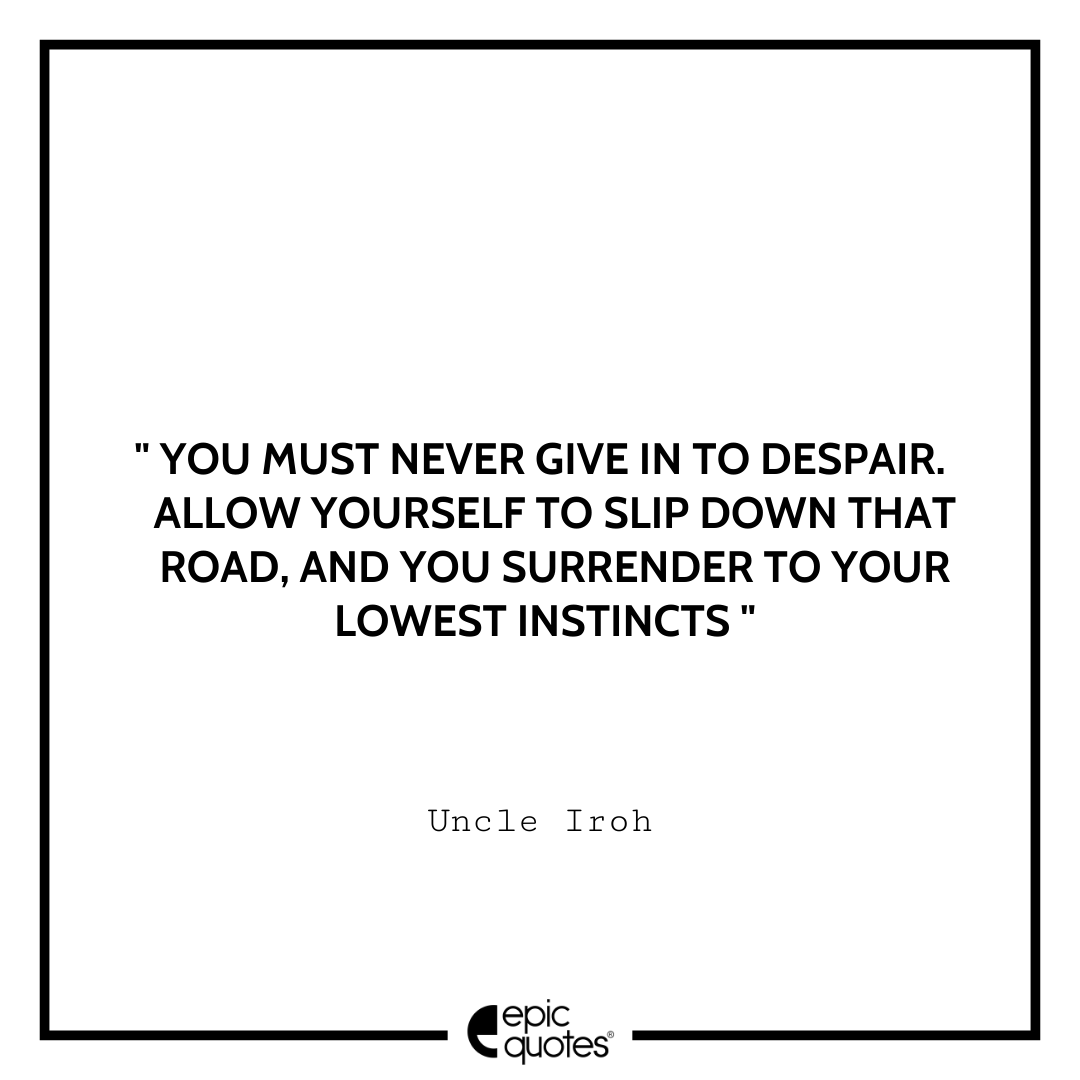 13 . You must never give in to despair. Allow yourself to slip down that road, and you surrender to your lowest instincts. -Uncle Iroh