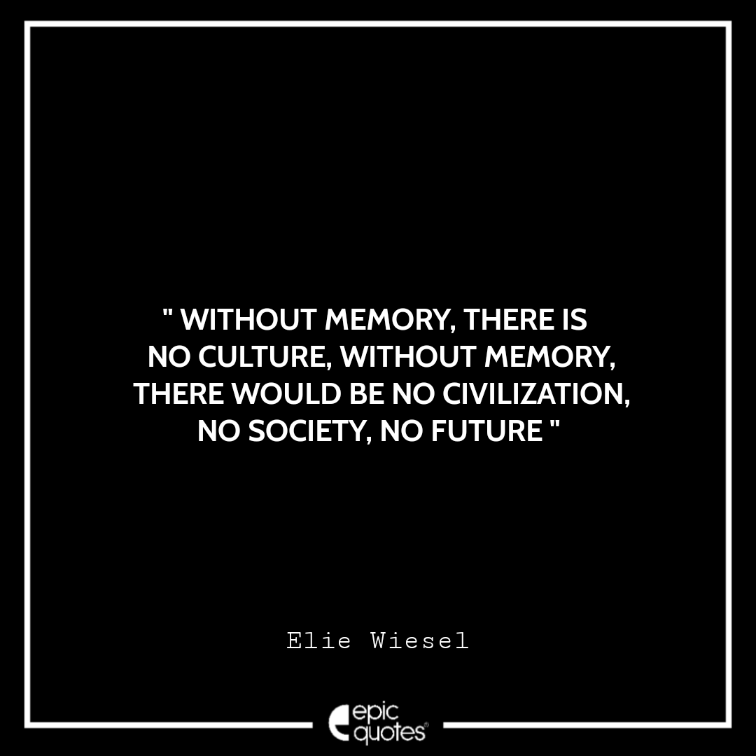 1 Without memory, there is no culture, Without memory, there would be no civilization, no society, no future. -Elie Wiesel