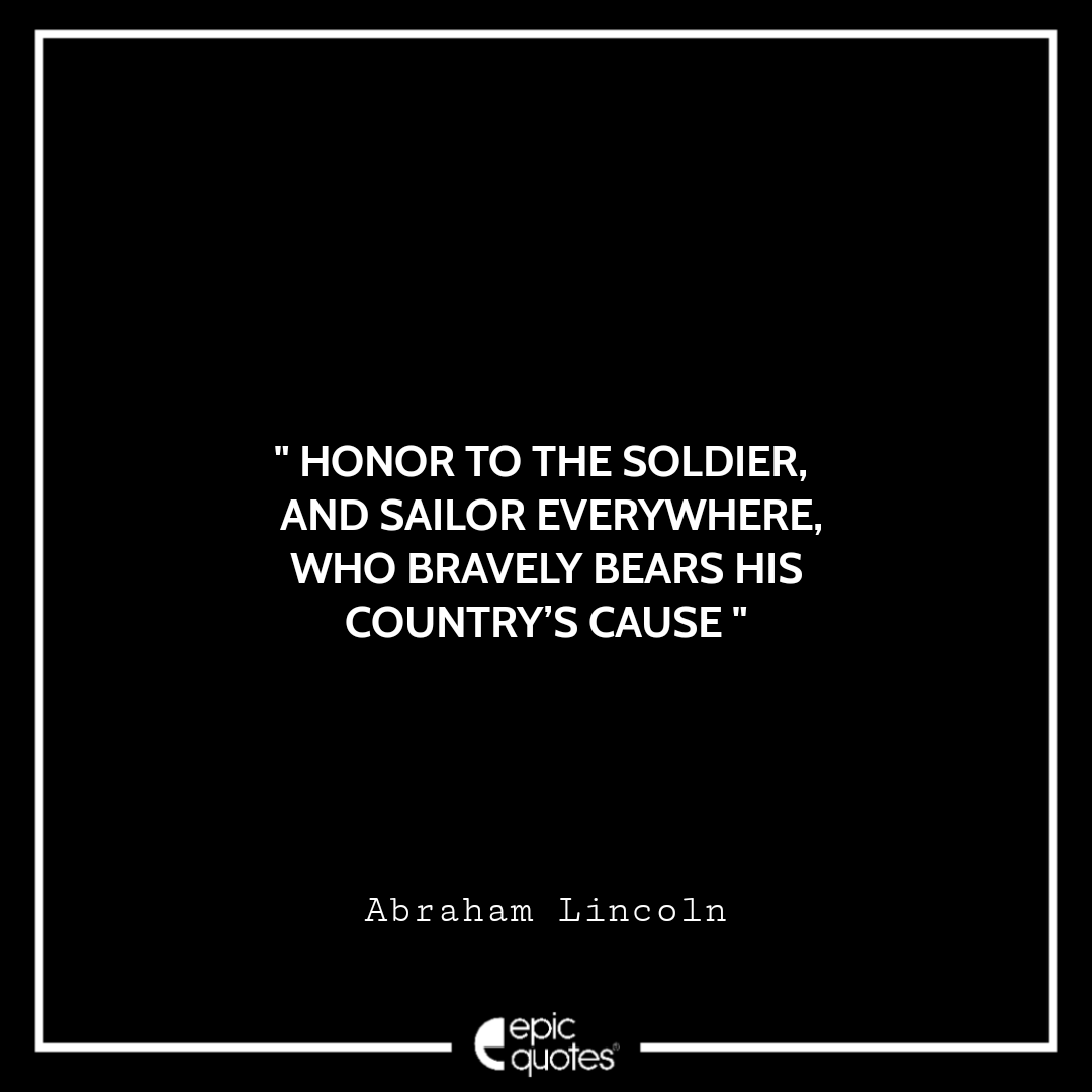 9. Honor to the Soldier, and Sailor everywhere, who bravely bears his country’s cause. -Abraham Lincoln