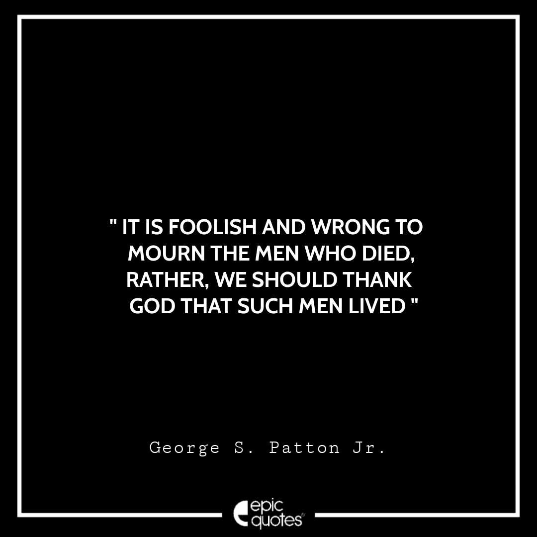 11 It is foolish and wrong to mourn the men who died, Rather, we should thank God that such men lived.- George S. Patton Jr.