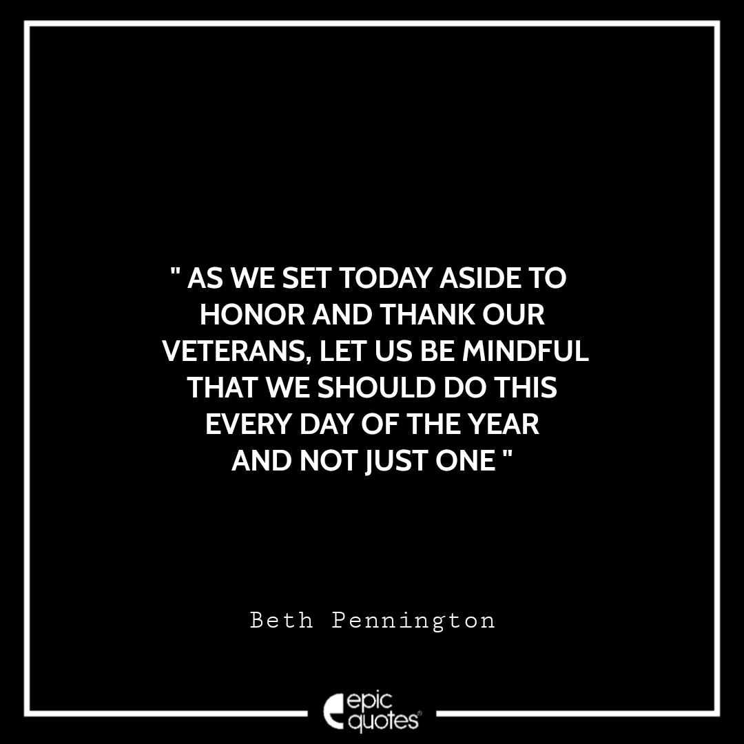 13. As we set today aside to honor and thank our veterans, let us be mindful that we should do this every day of the year and not just one. -Beth Pennington