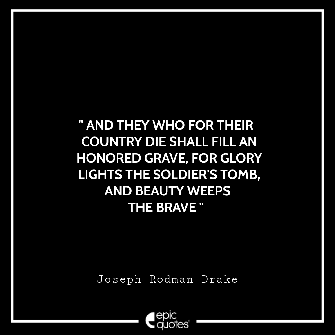 14. And they who for their country die shall fill an honored grave, for glory lights the soldier’s tomb, and beauty weeps the brave. -Joseph Rodman Drake