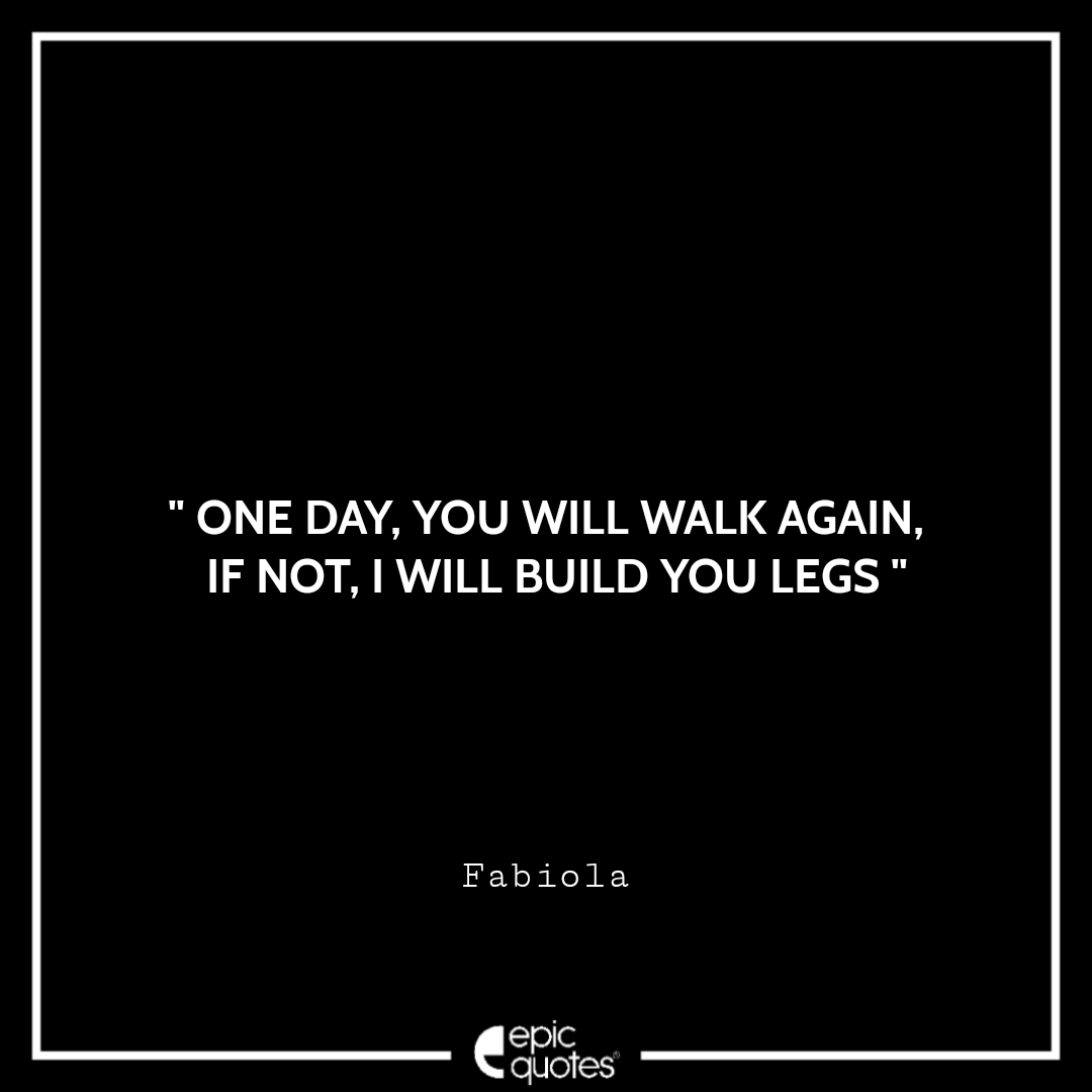 1 One day, you will walk again. If not, I will build you legs. -Fabiola
