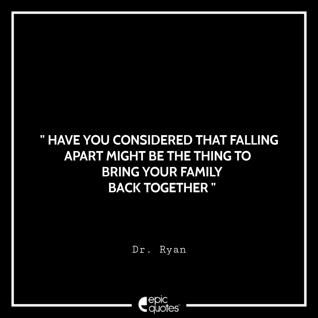 2. Have you considered that falling apart might be the thing to bring your family back together? –Dr. Ryan