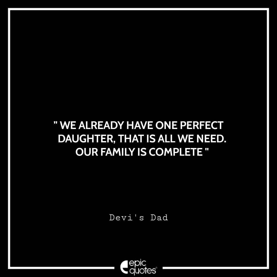7. We already have one perfect daughter, that is all we need. Our family is complete. –Devi’s Dad