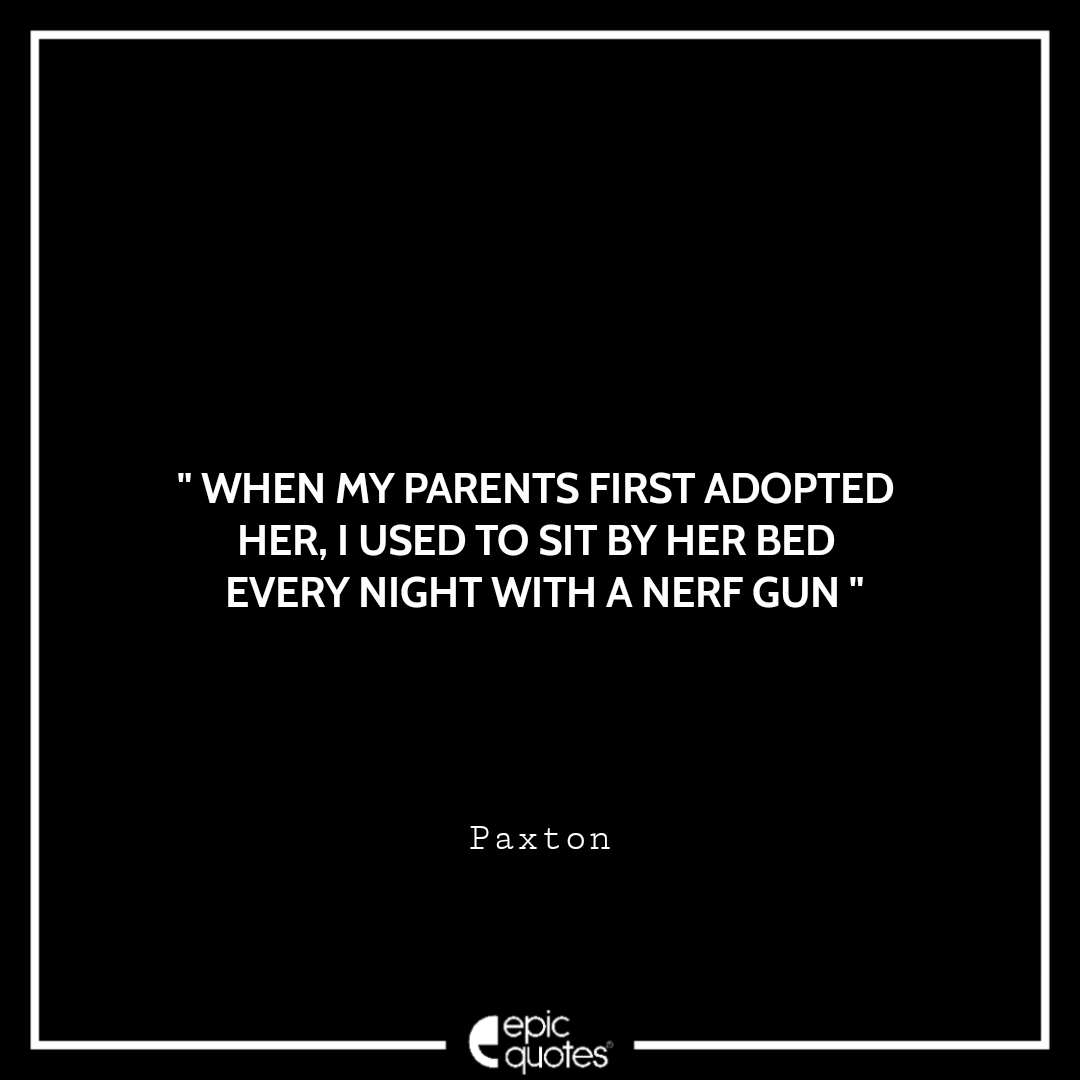8 When my parents first adopted her, I used to sit by her bed every night with a Nerf gun.- Paxton