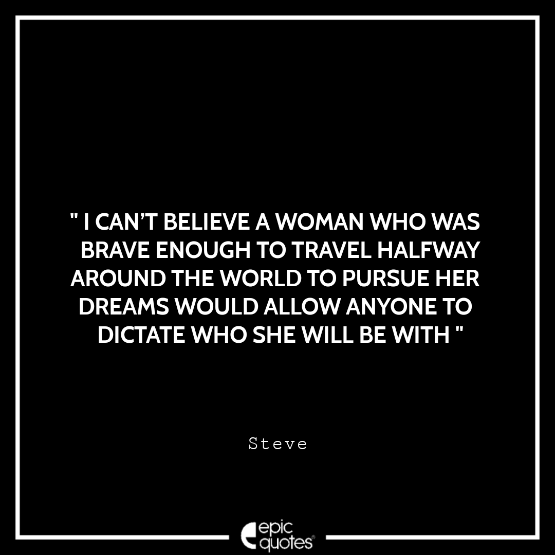 9 I can’t believe a woman who was brave enough to travel halfway around the world to pursue her dreams would allow anyone to dictate who she will be with. –Steve