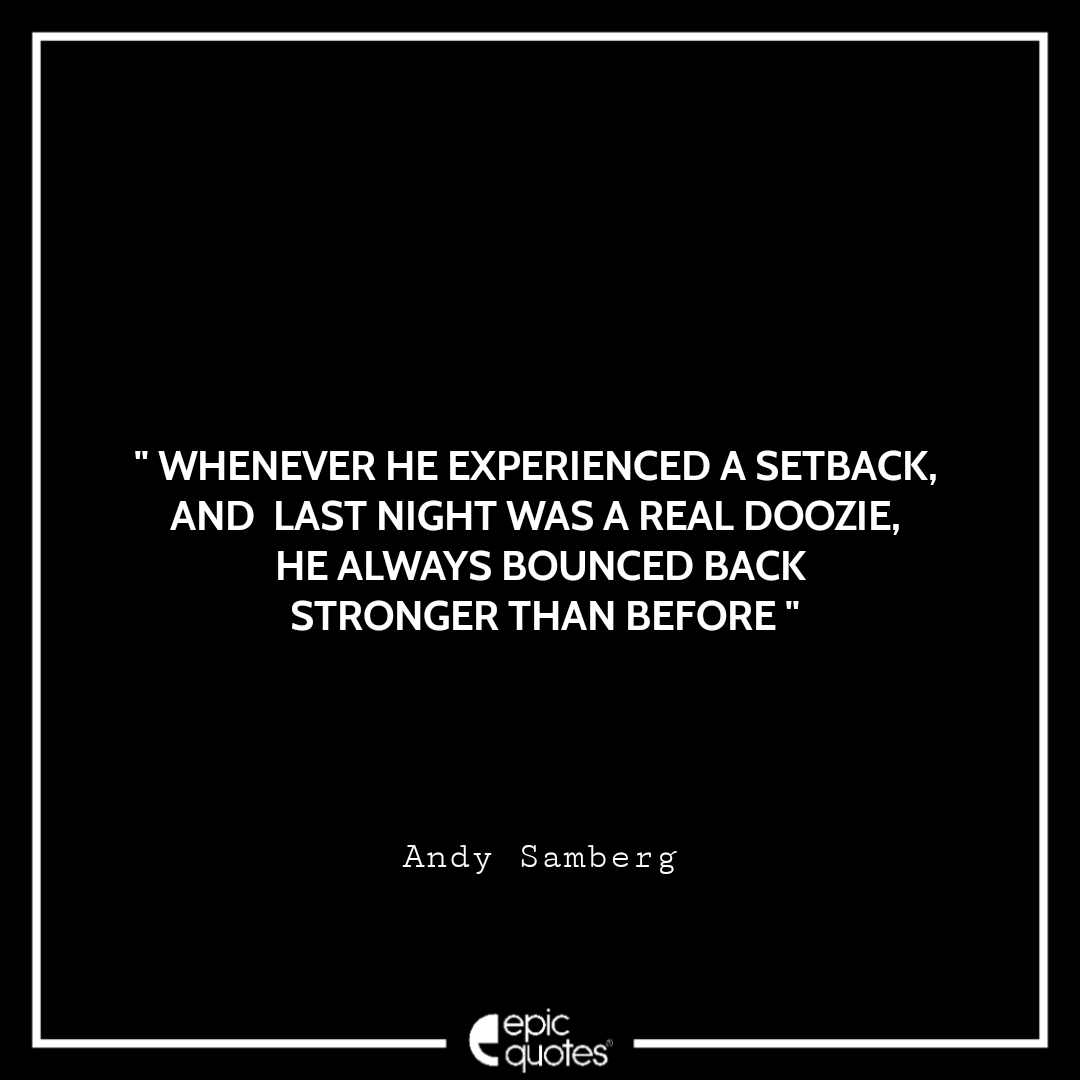 10 Whenever he experienced a setback, and last night was a real doozie, he always bounced back stronger than before. –Andy Samberg