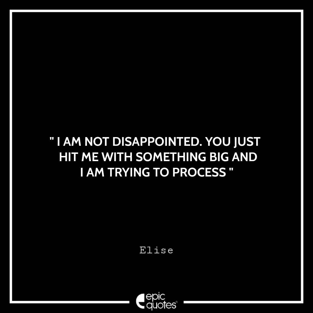 13. I am not disappointed. You just hit me with something big and I am trying to process. –Elise