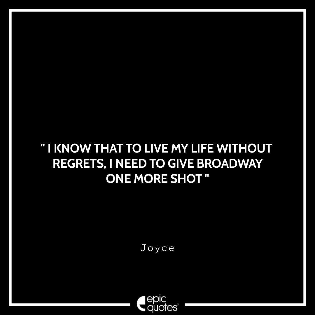 14 I know that to live my life without regrets, I need to give Broadway one more shot. –Joyce