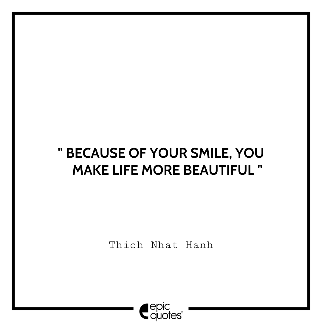 1 Because of your smile, you make life more beautiful. -Thich Nhat Hanh