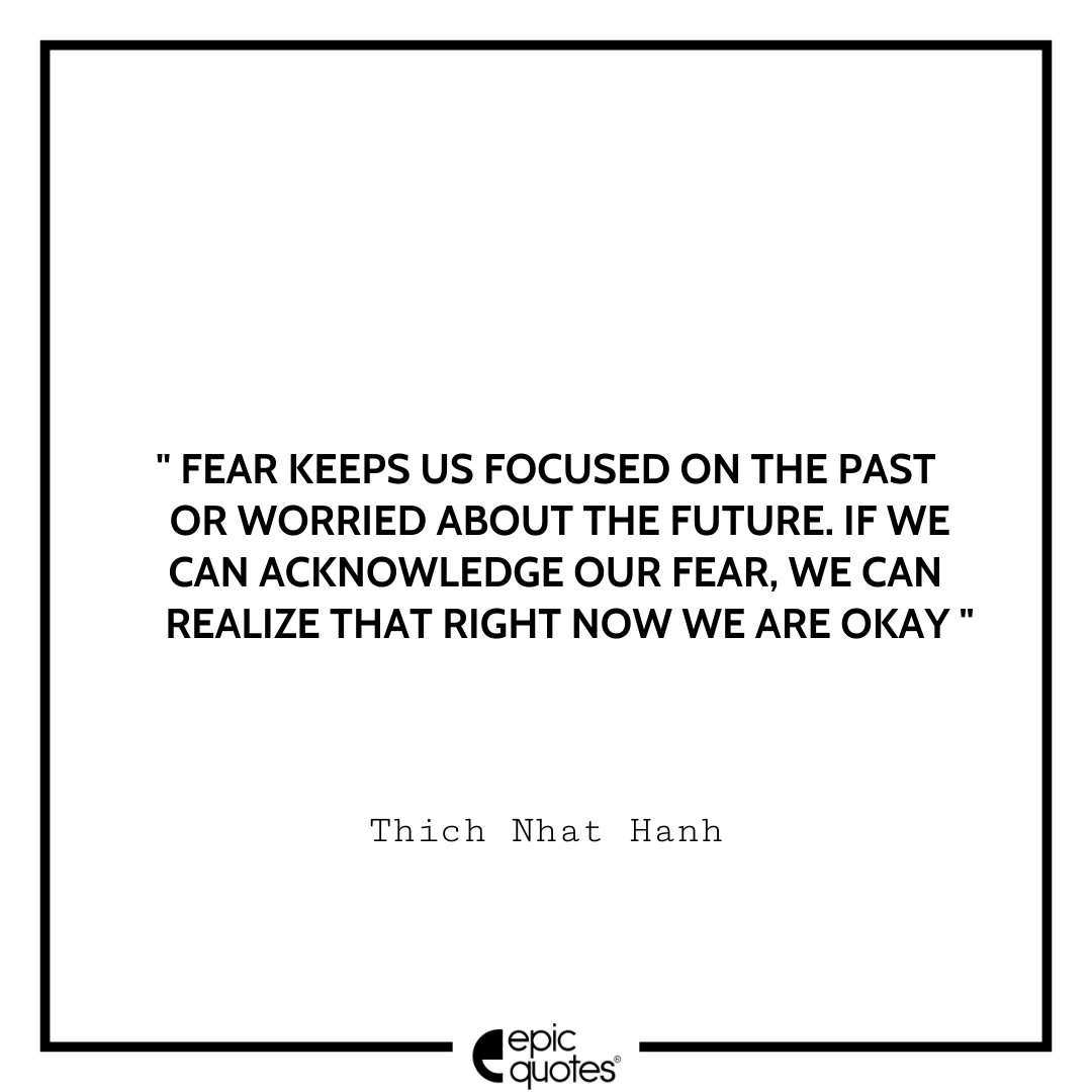 3 Fear keeps us focused on the past or worried about the future. If we can acknowledge our fear, we can realize that right now we are okay. -Thich Nhat Hanh