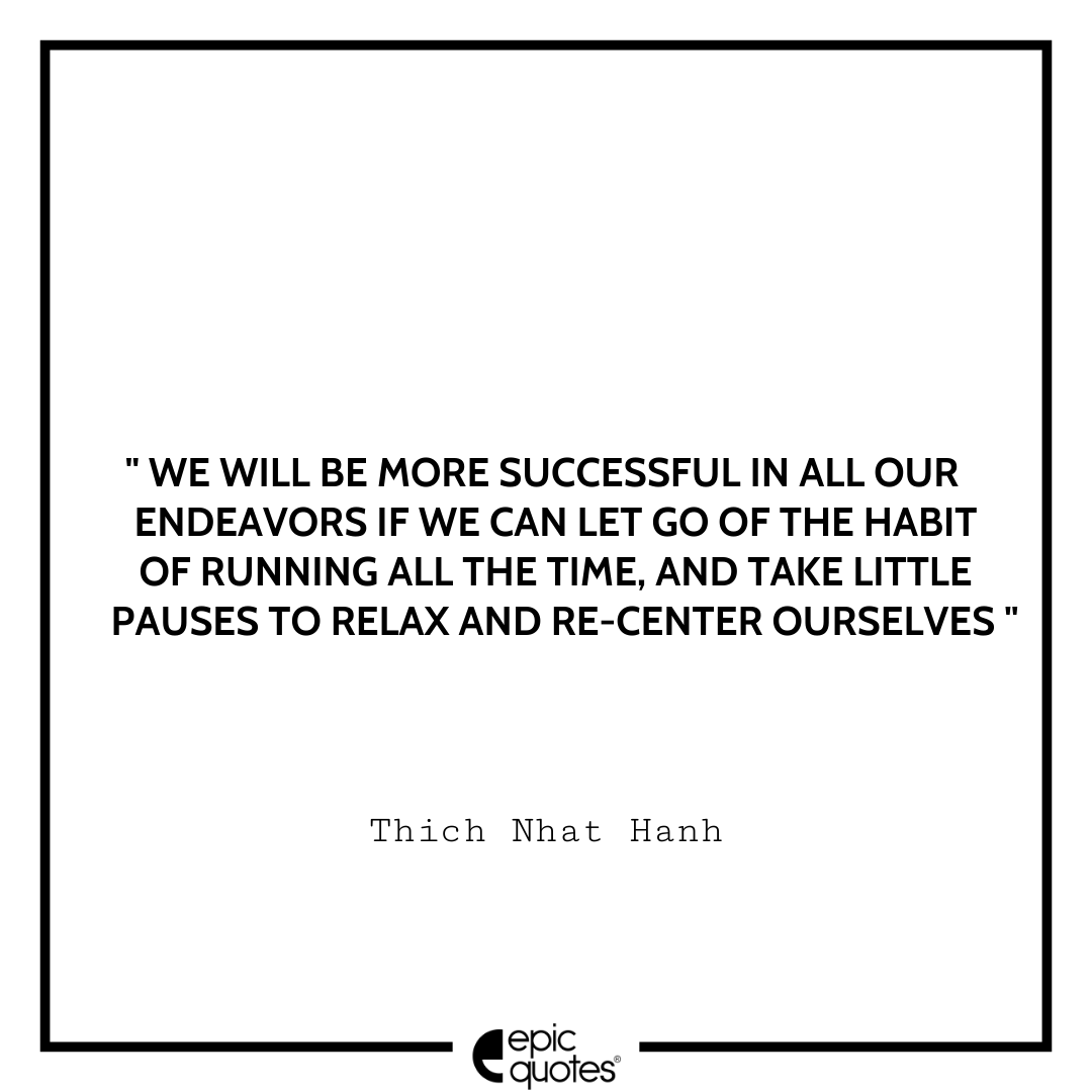 5 We will be more successful in all our endeavors if we can let go of the habit of running all the time, and take little pauses to relax and re-center ourselves. -Thich Nhat Hanh