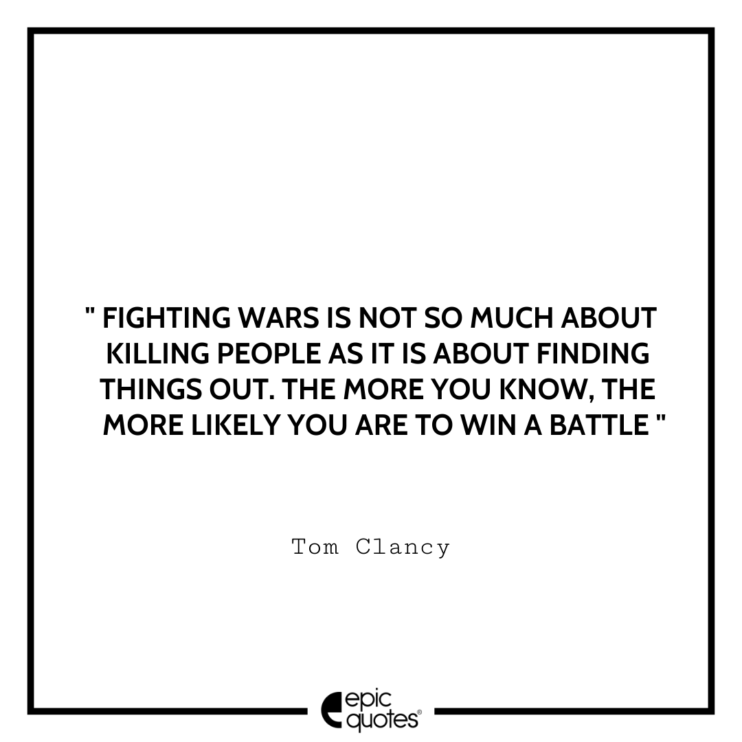 6 Fighting wars is not so much about killing people as it is about finding things out. The more you know, the more likely you are to win a battle. -Tom Clancy