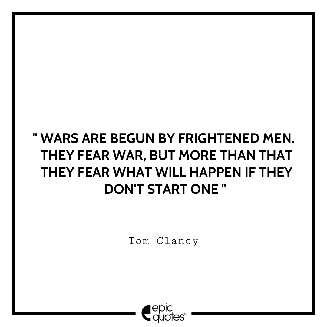 7. Wars are begun by frightened men. They fear war, but more than that, they fear what will happen if they don’t start one. -Tom Clancy
