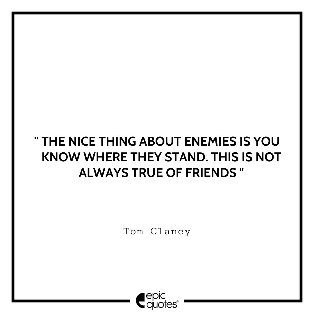 12. The nice thing about enemies is you know where they stand. This is not always true of friends. -Tom Clancy