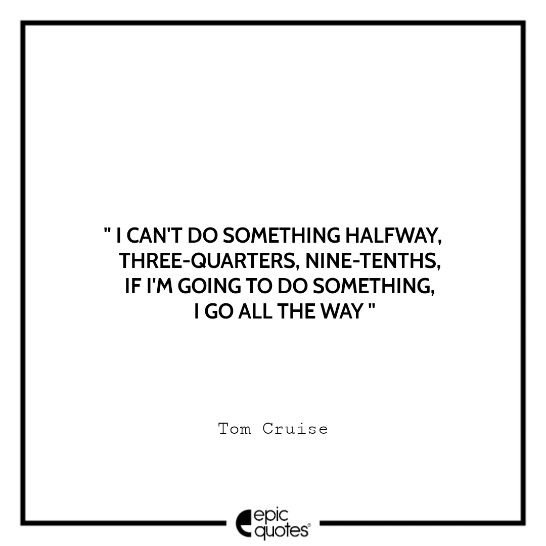 12. I can’t do something halfway, three-quarters, nine-tenths, If I’m going to do something, I go all the way. -Tom Cruise