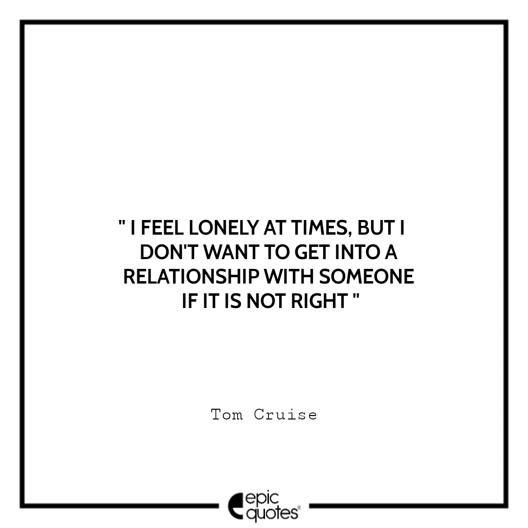 13 I feel lonely at times, but I don’t want to get into a relationship with someone if it is not right. -Tom Cruise