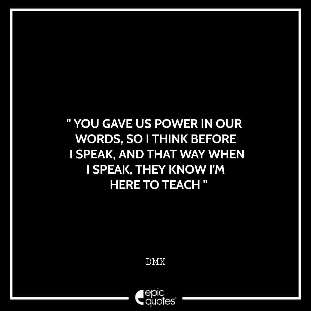 11 You gave us power in our words, so I think before I speak, and that way when I speak, they know I’m here to teach. -DMX