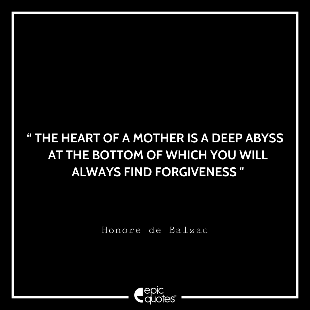 6 The heart of a mother is a deep abyss at the bottom of which you will always find forgiveness. -Honore de Balzac