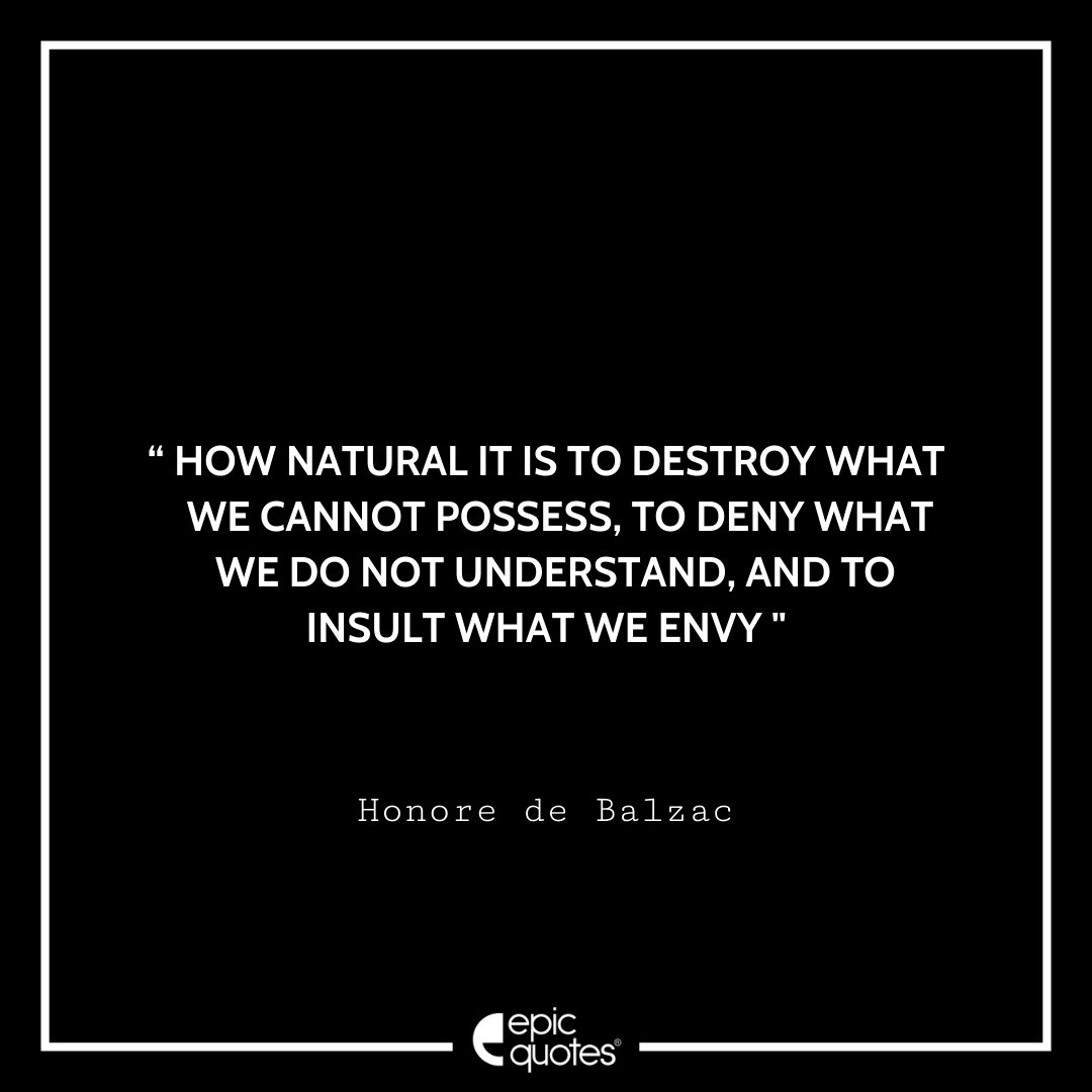 10. How natural it is to destroy what we cannot possess, to deny what we do not understand, and to insult what we envy. -Honore de Balzac