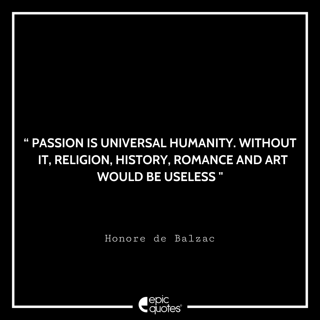 13 Passion is universal humanity. Without it religion, history, romance and art would be useless. -Honore de Balzac