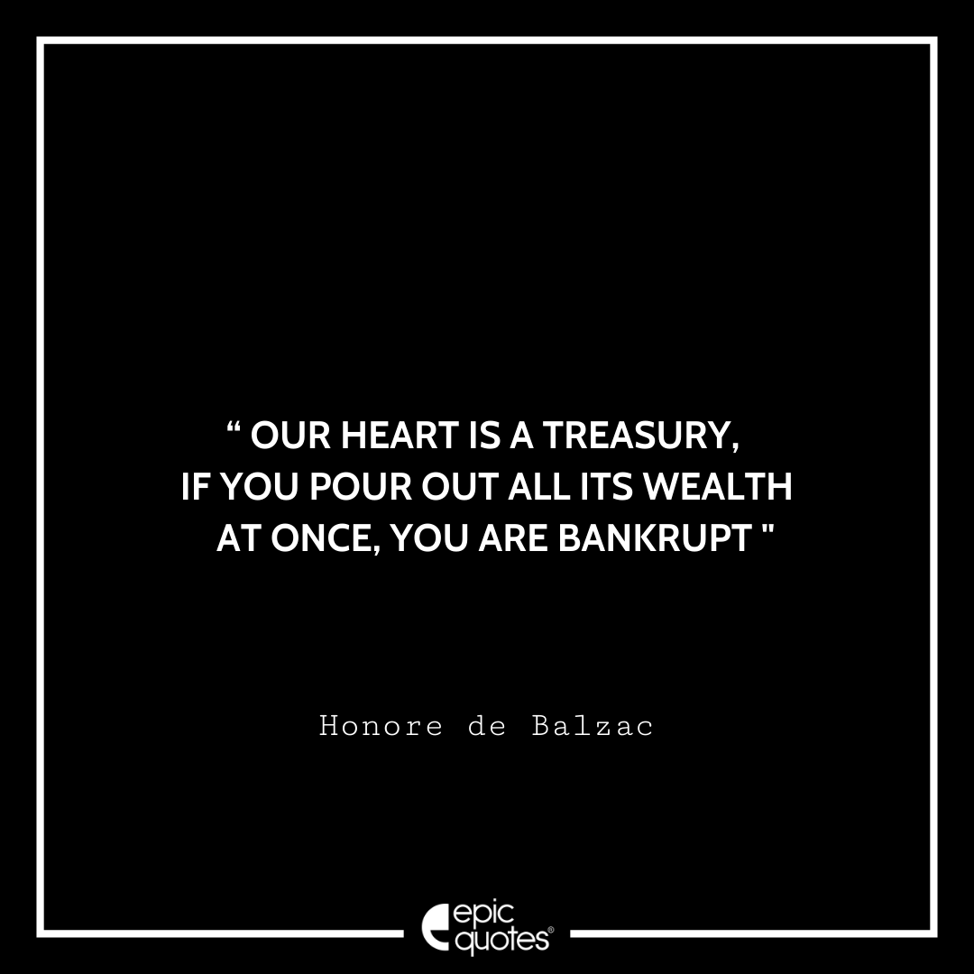 15. Our heart is a treasury; if you pour out all its wealth at once, you are bankrupt. -Honore de Balzac