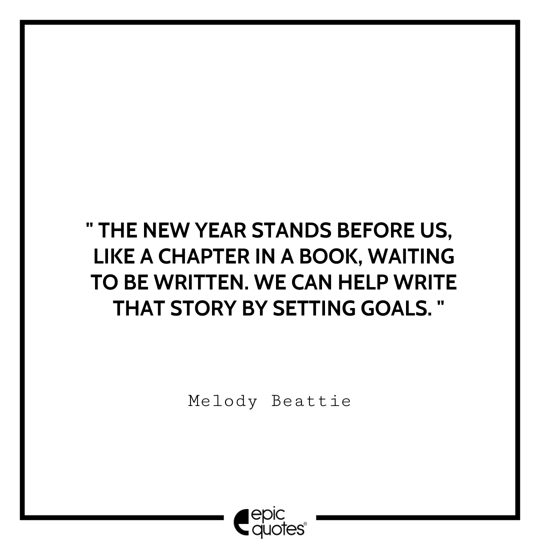 14. The new year stands before us, like a chapter in a book, waiting to be written. We can help write that story by setting goals. -Melody Beattie