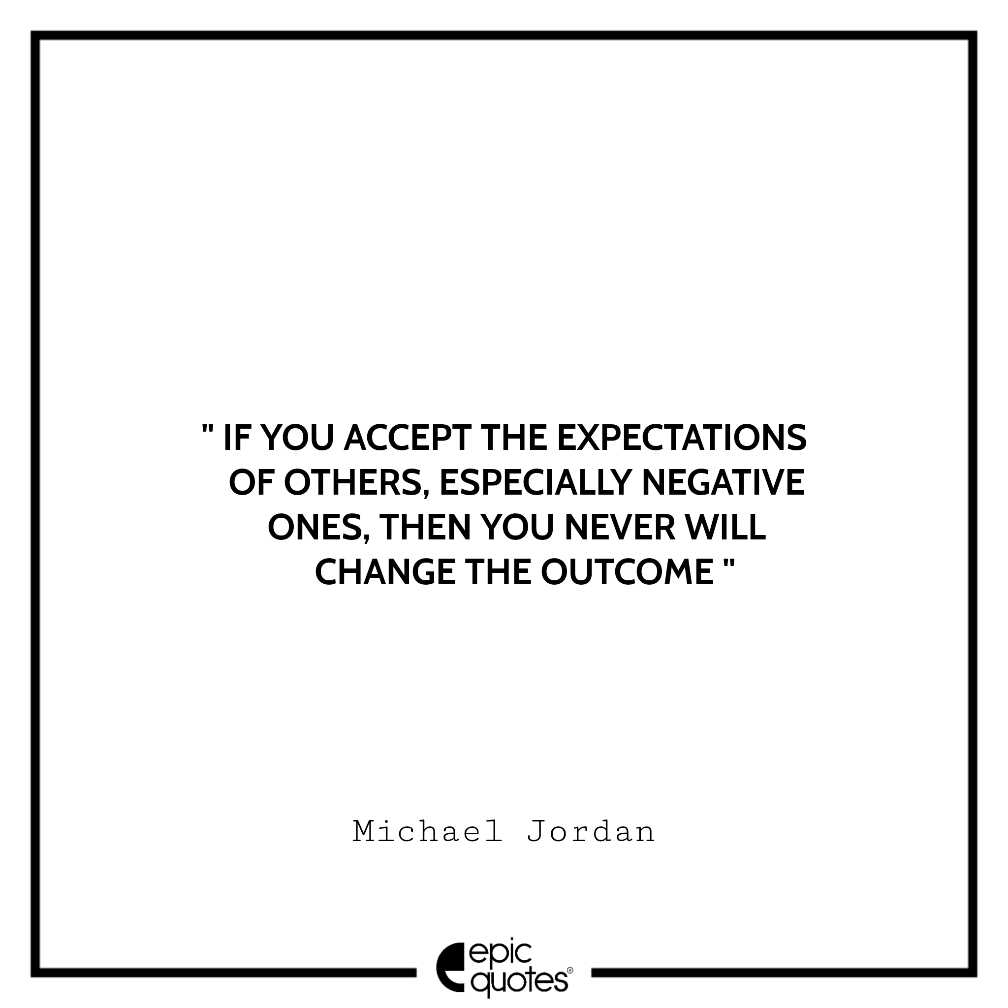 4 If you accept the expectations of others, especially negative ones, then you never will change the outcome. -Michael Jordan