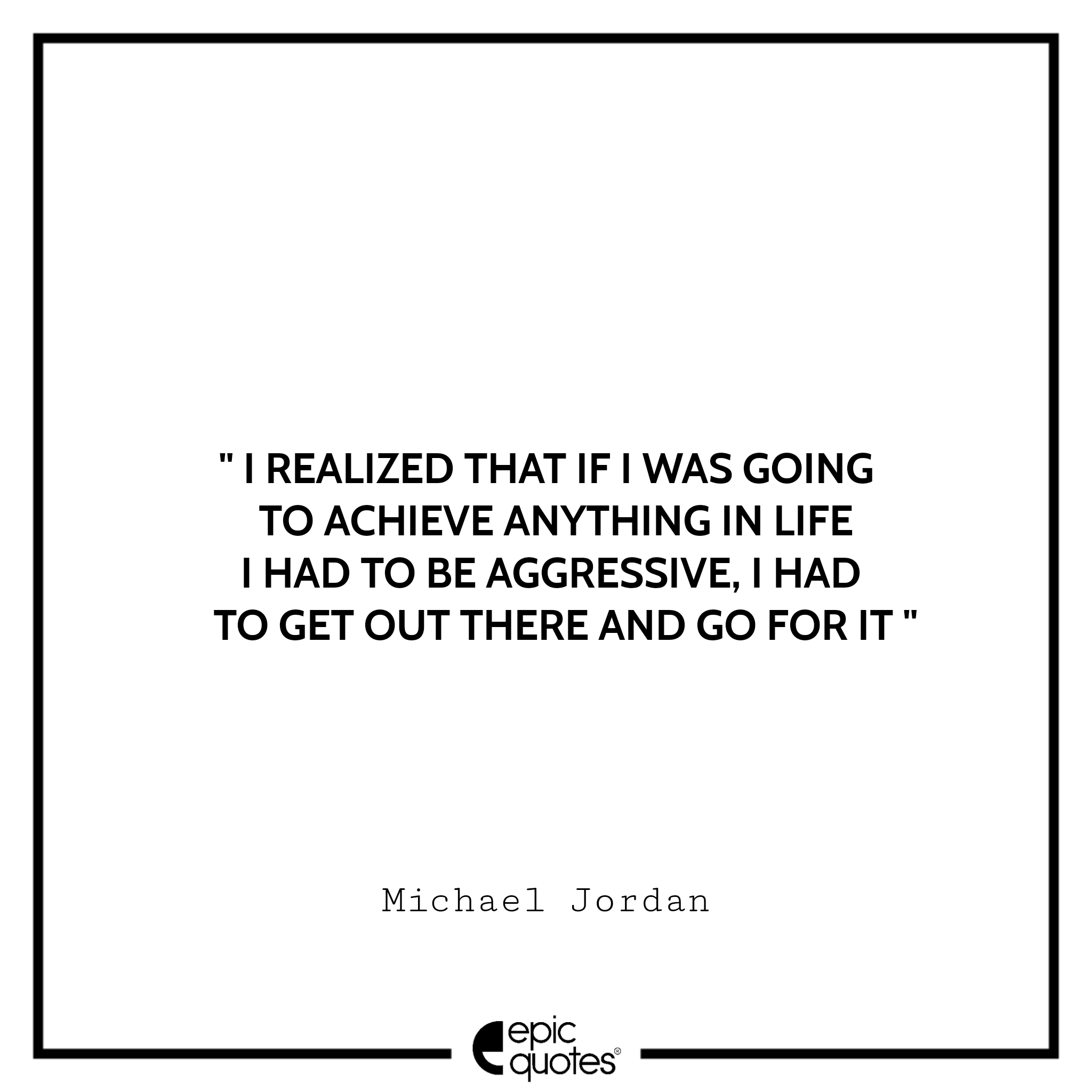 12 I realized that if I was going to achieve anything in life I had to be aggressive, I had to get out there and go for it. -Michael Jordan
