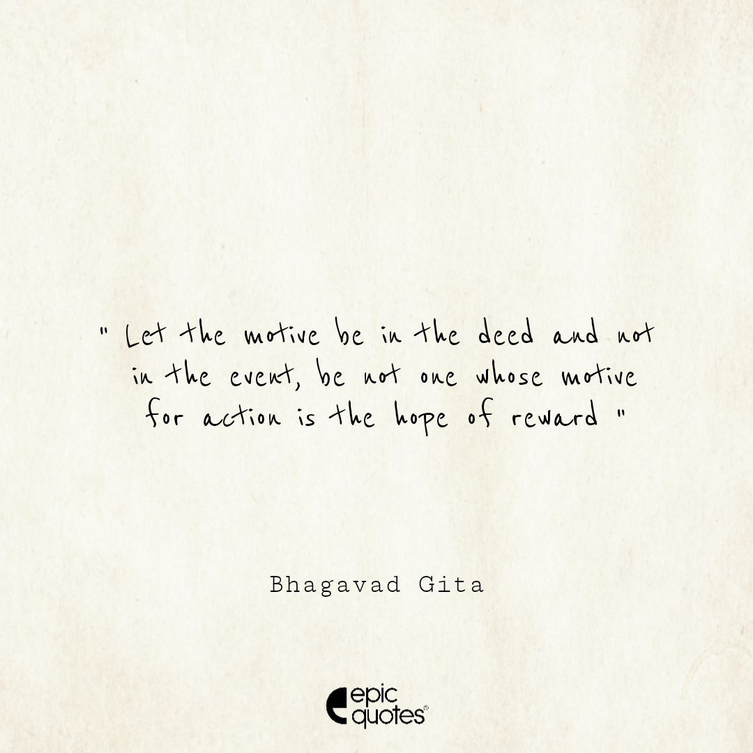 9. Let the motive be in the deed and not in the event. Be not one whose motive for action is the hope of reward