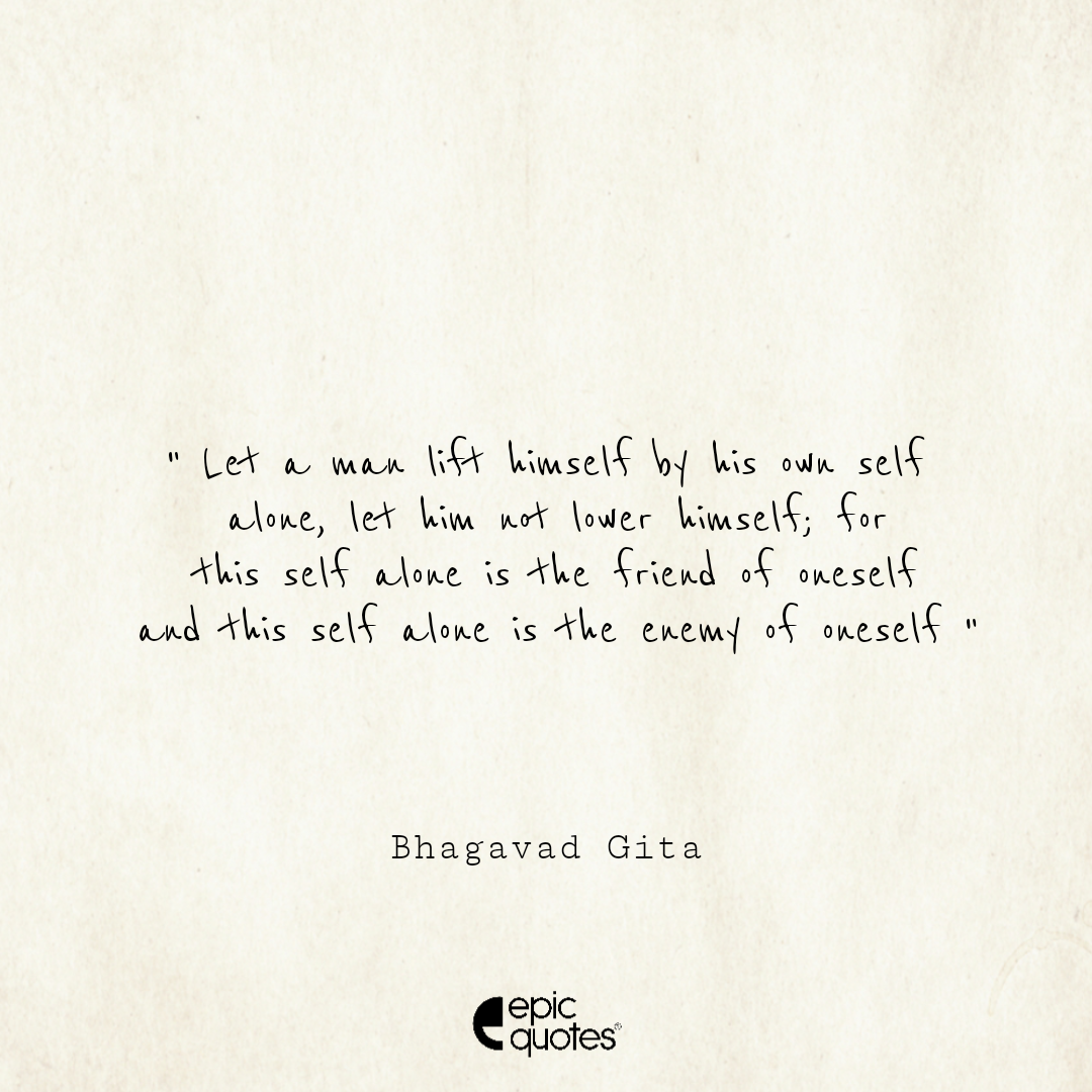 12. Let a man lift himself by his own self alone, let him not lower himself; for this self alone is the friend of oneself and this self alone is the enemy of oneself