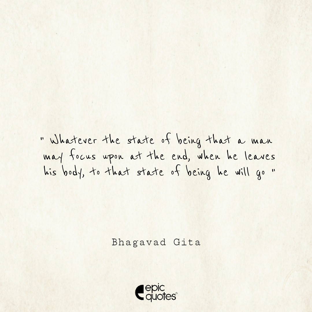 13. Whatever the state of being that a man may focus upon at the end, when he leaves his body, to that state of being he will go
