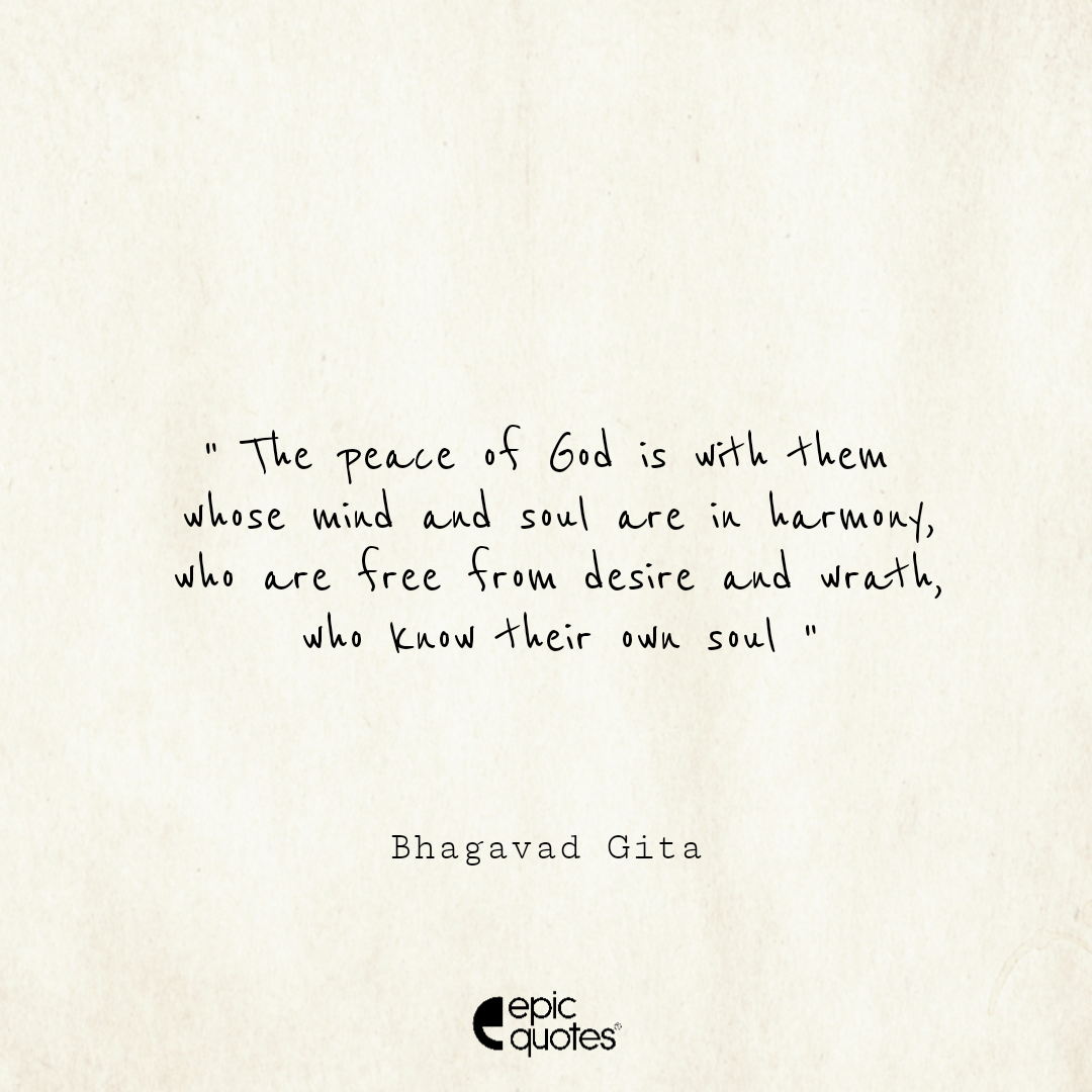 15. The peace of God is with them whose mind and soul are in harmony, who are free from desire and wrath, who know their own soul
