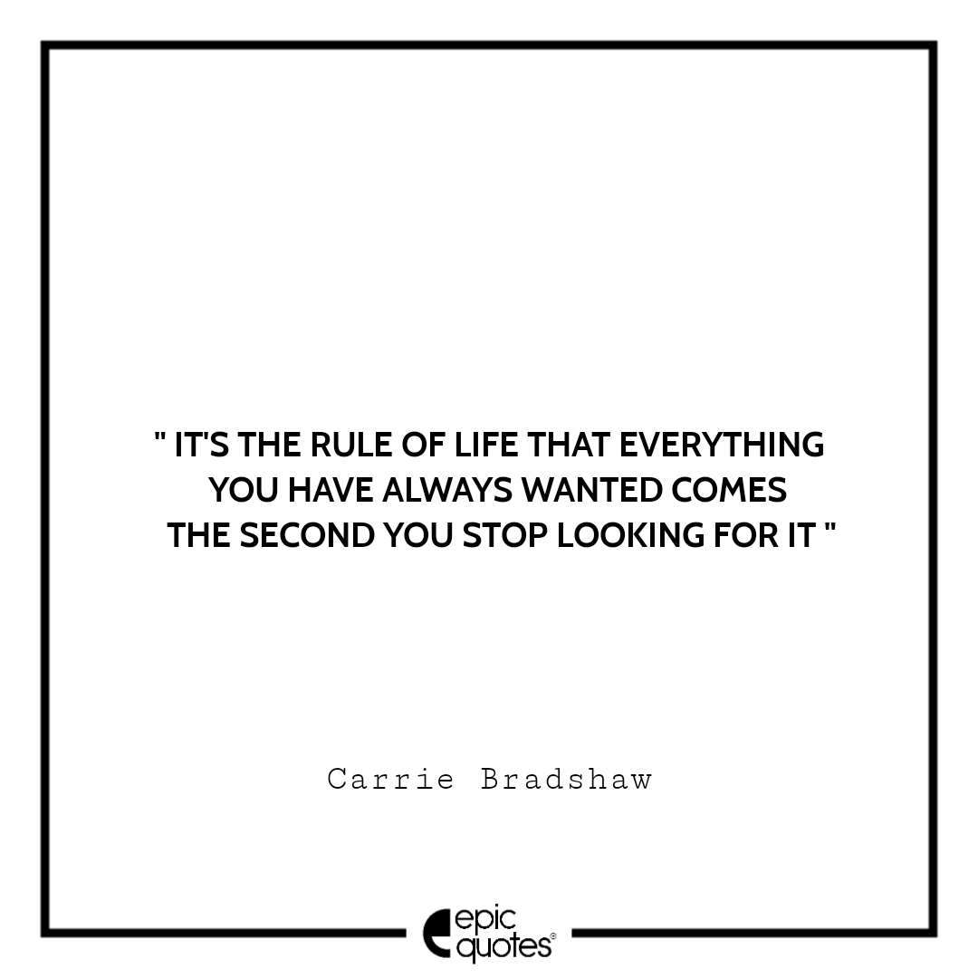 1 . It’s the rule of life that everything you have always wanted comes the second you stop looking for it. -Carrie Bradshaw
