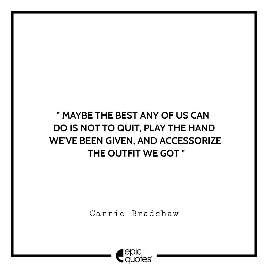 8. Maybe the best any of us can do is not to quit, play the hand we’ve been given, and accessorize the outfit we got. -Carrie Bradshaw