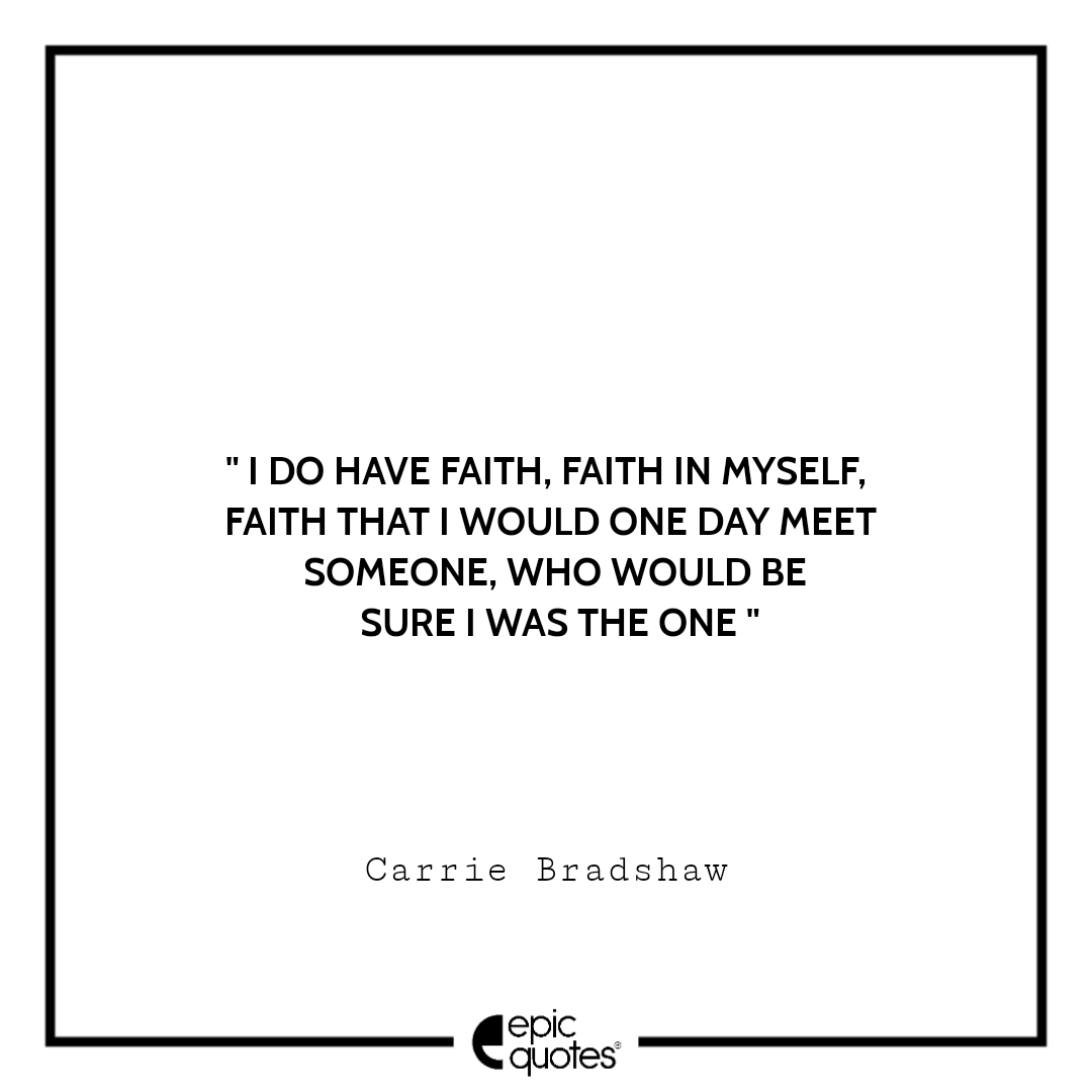 9 . I do have faith, Faith in myself, Faith that I would one day meet someone, who would be sure I was the one. -Carrie Bradshaw