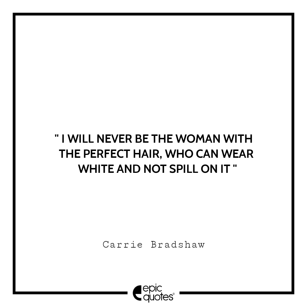 11. I will never be the woman with the perfect hair, who can wear white and not spill on it. –Carrie Bradshaw
