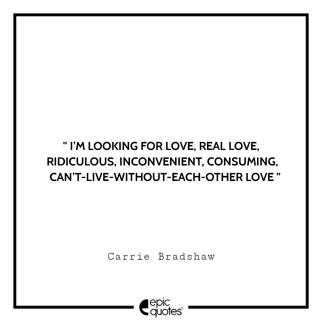 13 . I’m looking for love, Real love, Ridiculous, inconvenient, consuming, can’t-live-without-each-other love. – Carrie Bradshaw
