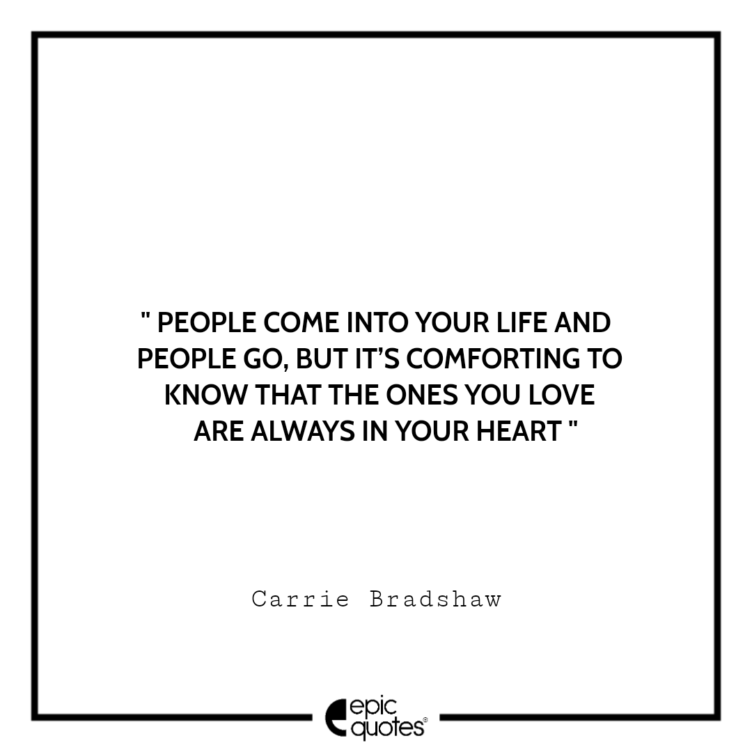 14 . People come into your life and people go. But it’s comforting to know that the ones you love are always in your heart. -Carrie Bradshaw