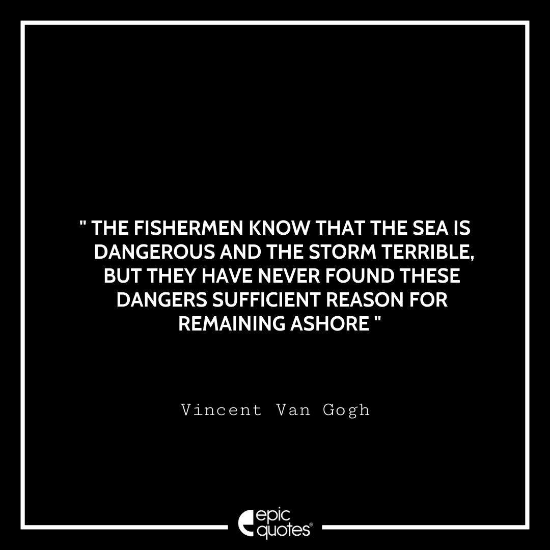 3 The fishermen know that the sea is dangerous and the storm terrible, but they have never found these dangers sufficient reason for remaining ashore. -Vincent Van Gogh