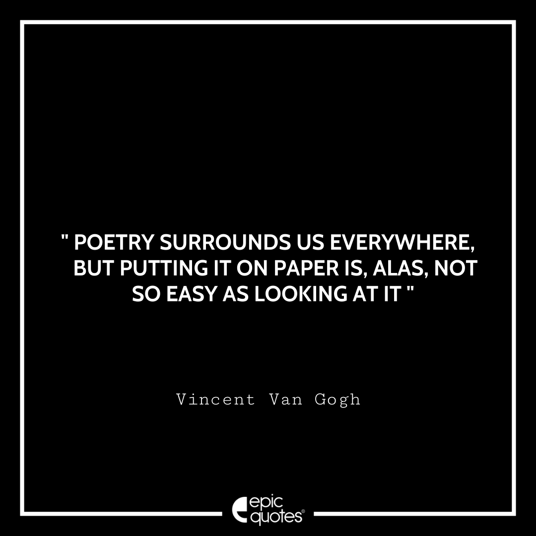 4. Poetry surrounds us everywhere, but putting it on paper is, alas, not so easy as looking at it. -Vincent Van Gogh