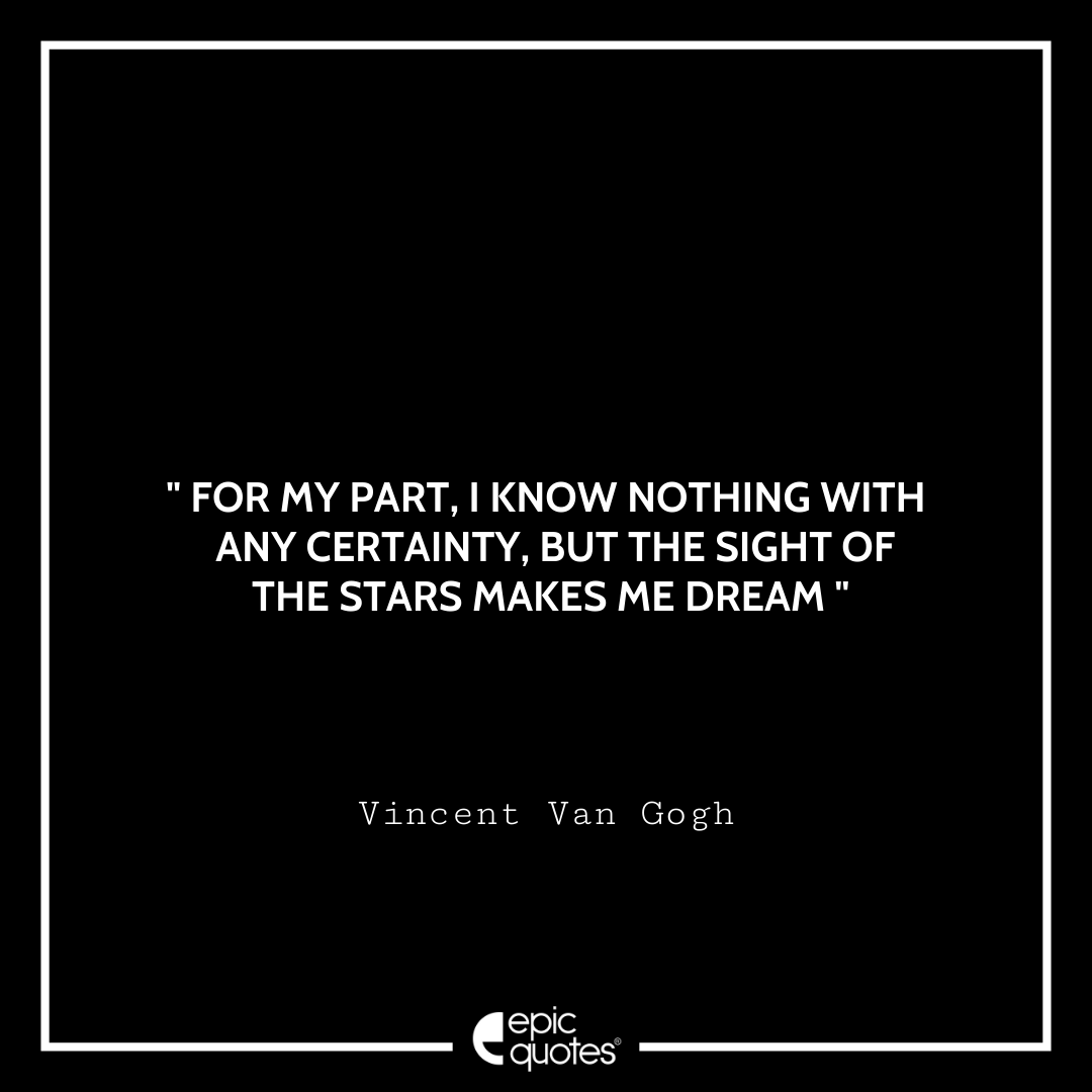 9. For my part, I know nothing with any certainty, but the sight of the stars makes me dream. -Vincent Van Gogh