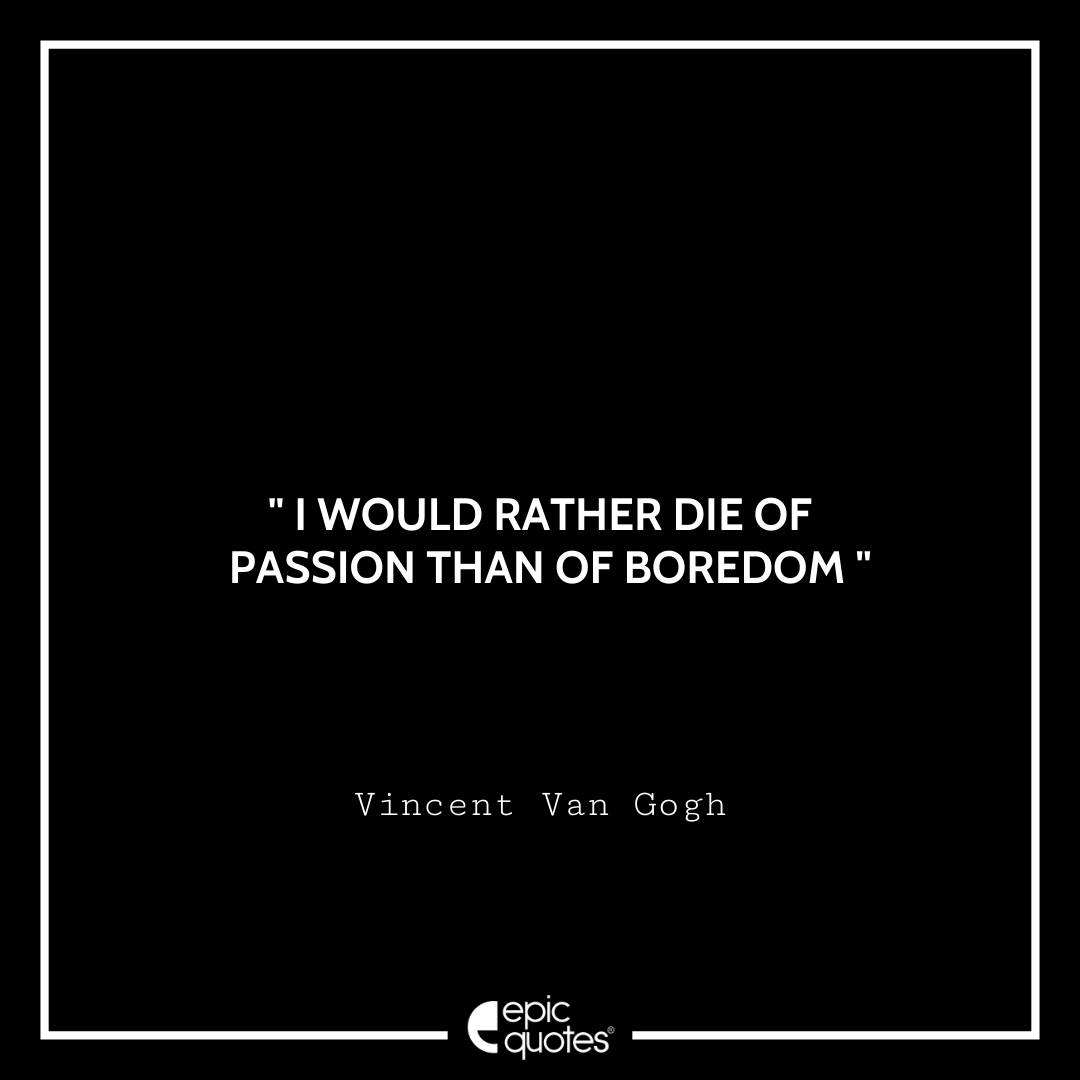15. I would rather die of passion than of boredom. -Vincent Van Gogh